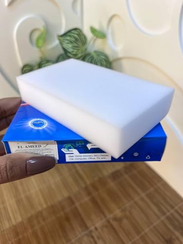 - متينة وتدوم طويلًا: مصنوعة من إسفنج الميلامين عالي الجودة، المتميز بالكثافة والمتانة، والمصمم لتحمل جلسات التنظيف المتعددة.