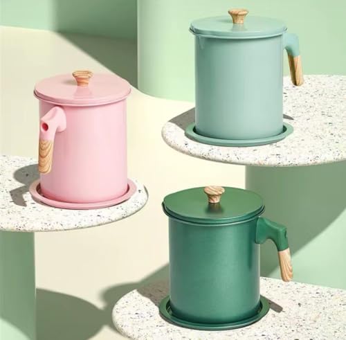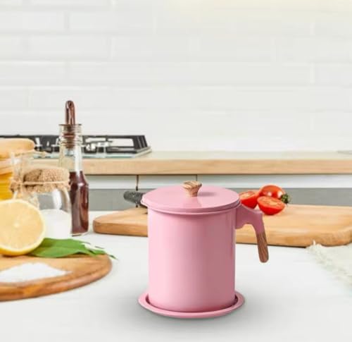 Generic - وعاء تجميع الزيت المنزلي، ١.٤ لتر، مقبض خشبي، مع غطاء