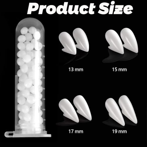- أنياب بمقاس اختياري: تتضمن هذه المجموعة 4 مقاسات تتراوح بين 13 إلى 15 ملم، لتلبية احتياجاتك التنكرية المختلفة.