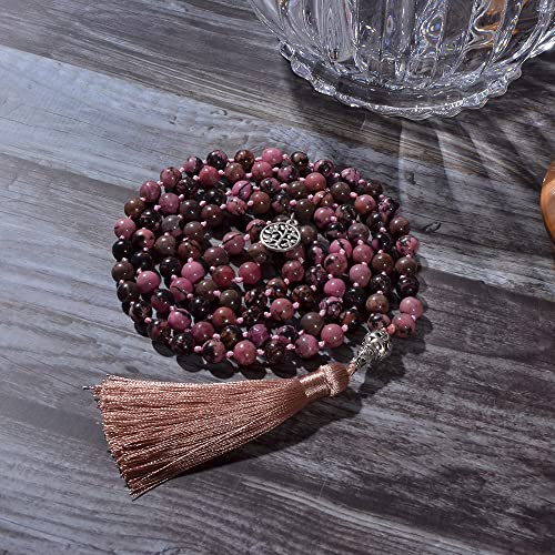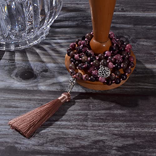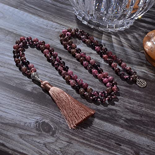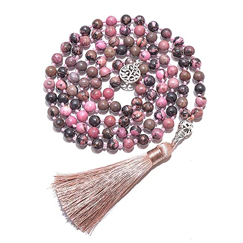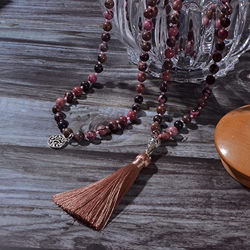 Hovaete - سلسلة خرز الصلاة 108 مالا مصنوعة من الاحجار الطبيعية مجوهرات تامل اليوجا معقود يدويا جابا مطرز بشراشيب طويلة مع دلاية شجرة الحياة للرجال والنساء هوفايتي حجر بدون أحجار كريمة