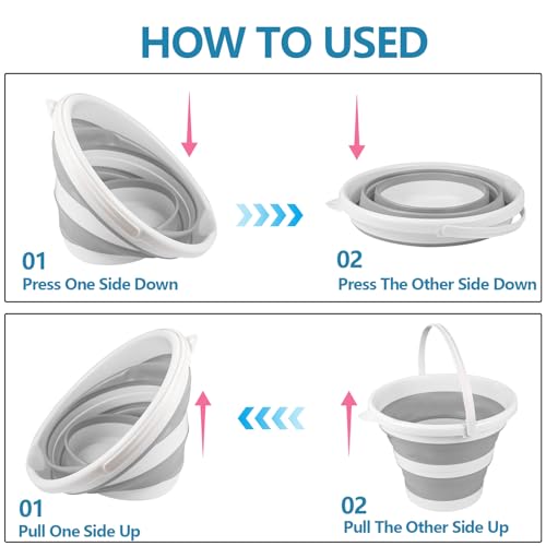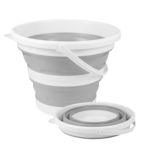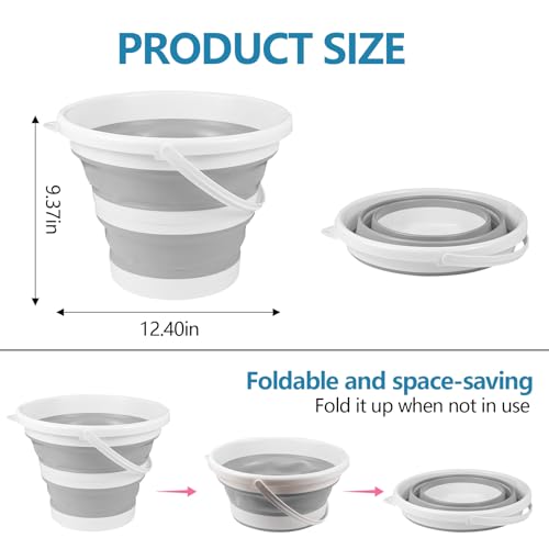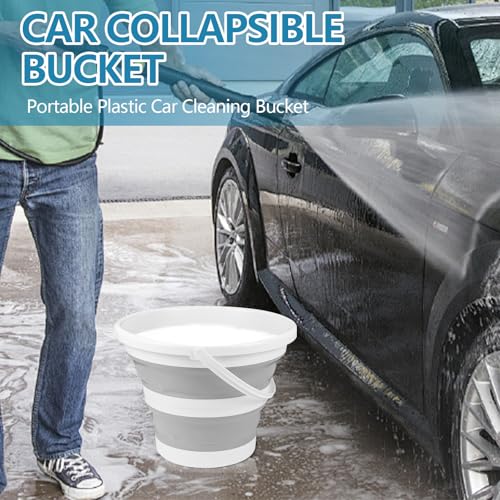 Hovom - هوفوم دلو قابل للطي للسيارة، دلو غسيل سيارة قابل للطي سعة 10 لتر 2.6 جالون، دلو تنظيف بلاستيكي محمول موفر للمساحة للاستخدام الداخلي والخارجي والحديقة والتخييم والصيد (رمادي)
