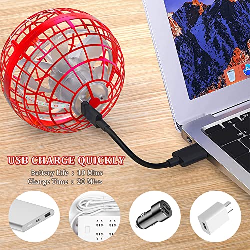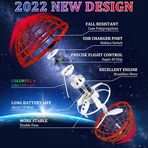 Howcode - عبة كرة طائرة بتصميم جرم سماوي طائر لعبة للتحليق 360 درجة مع اضواء LED للاطفال والبالغين للاماكن المغلقة والمفتوحة مطورة 2021 احمر بولي بروبلين