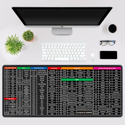 HOWUKE - قاعدة ماوس باختصارات للوحة المفاتيح، قاعدة مفاتيح سريعة مضادة للانزلاق مع أنماط مفاتيح مختصرة شفافة من هاووكي، 80×30 سم