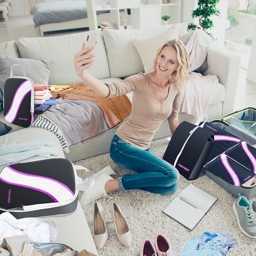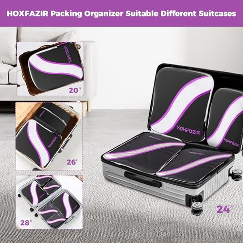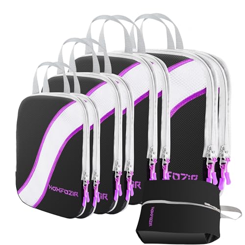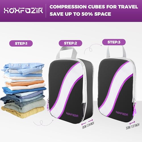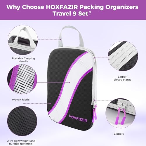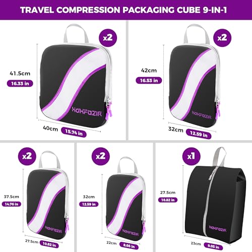 HOXFAZIR - طقم شنط تغليف ضاغطة بتصميم مكعب، شنط تنظيم لأمتعة ولملحقات السفر، منظمات تعبئة مضغوطة قابلة للتوسيع من هوكسفازير، 9 قطع