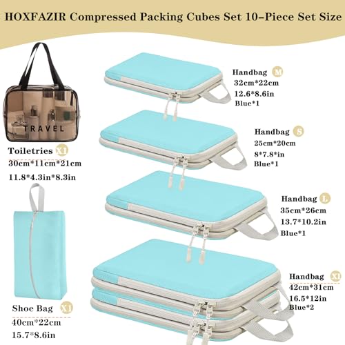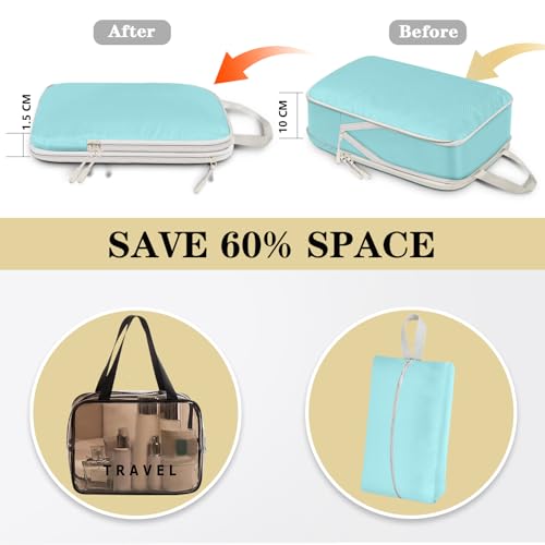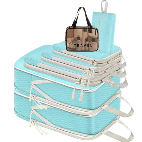HOXFAZIR - طقم شنط تغليف ضاغطة بتصميم مكعب، شنط تنظيم لأمتعة ولملحقات السفر، منظمات تعبئة مضغوطة قابلة للتوسيع من هوكسفازير، 7 قطع