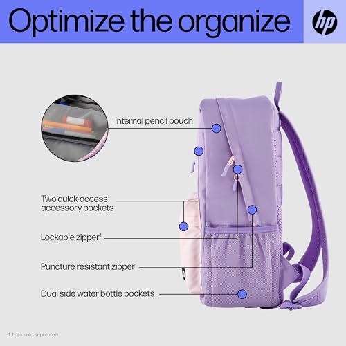 HP - شنطة ظهر كامبوس من اتش بي، لون لافندر، موديل 7J597AA