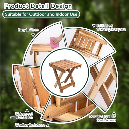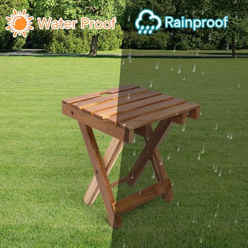 HPC DEC R OUR HAPPY PLACE - ترابيزة قهوة صغيرة محمولة قابلة للطي من اتش بي سي ديكور، طاولة خشبية صغيرة قابلة للطي، للاستخدام الخارجي، ترابيزة فناء صغيرة، حمام السباحة، للداخل، الشرفة، طاولة الفناء الخلفي (مربع)