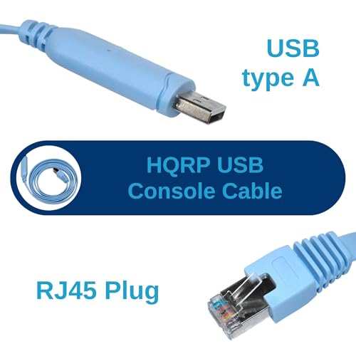 HQRP - HQRP USB Console Cable, USB to RJ45 Console Cable for Cisco Routers, NETGEAR, Ubiquity, LINKSYS, TP-Link, AP Router, Switch for Laptops in Windows Mac Linux, DB9 to RJ45, 1.5m / 60in, Blue