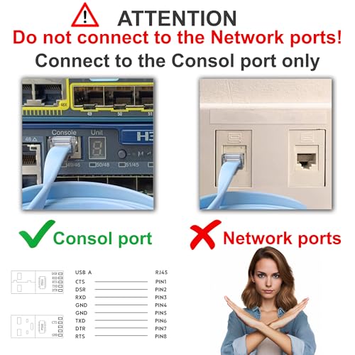 - USB to RJ45 Console Cable: !!Please note: that this is a console cable, NOT an Ethernet cable. It features an 8p8c connector with specific pin alignment suited for console ports, ensuring the right fit for your network devices.