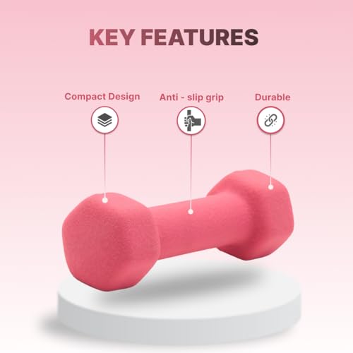 HRX - دمبل من النيوبرين من اتش ار اكس، قطعتان، كل قطعة بوزن 1 كيلوجرام، لون وردي