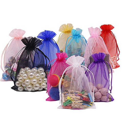 HRX Package - اتش ار اكس باكيج 100 قطعة من اكياس الاورجانزا متعددة الالوان 4 × 6 انش هدايا الزفاف للكريسماس برباط سحب مجوهرات شبكية للحلوى