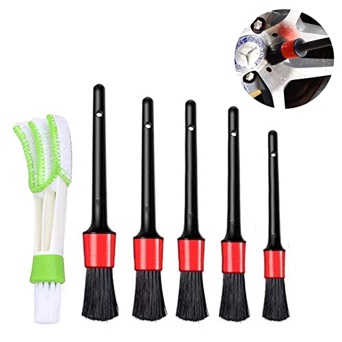 HsentimenH - مجموعة فرش تنظيف تفاصيل السيارة من 6 قطع، فرشاة تنظيف السيارة للحافات والتركيبات الداخلية والتجهيزات الداخلية والعجلات من خليط معدني والمحرك والاطارات