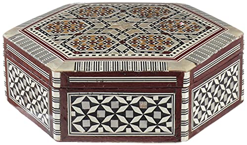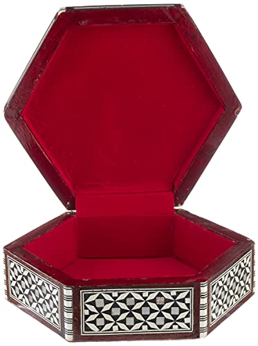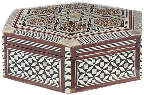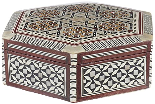 HSG - صندوق مجوهرات خشب وصدف سداسي الشكل من اتش اس جي، 17 سم - متعدد الالوان