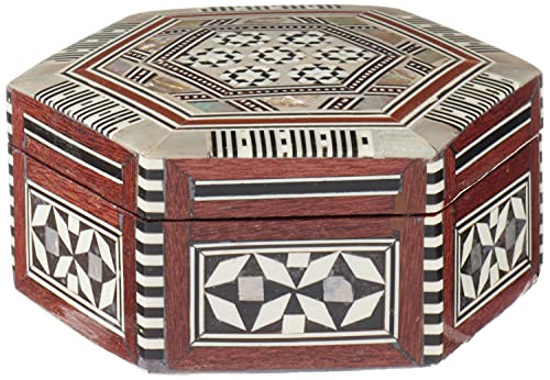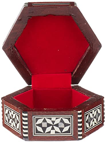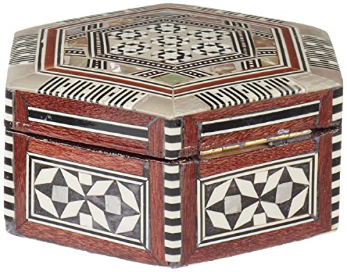 HSG - علبة اكسسوارات سداسية الشكل مزينة بالصدف من اتش اس جي - 7 سم