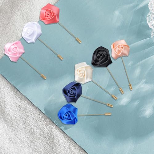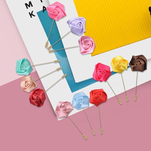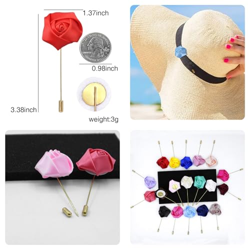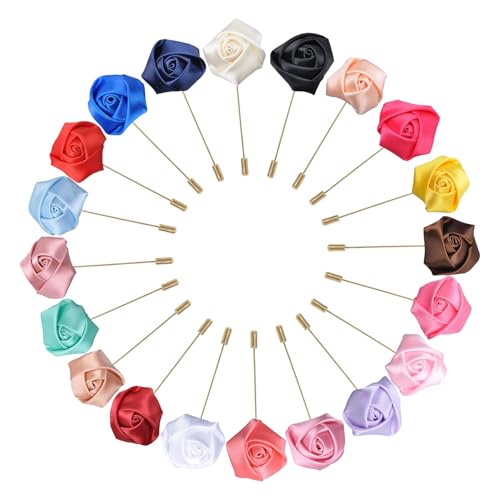HSQYJ - اتش اس كيو واي جيه 20 قطعة من دبابيس طية الصدر متعددة الالوان على شكل زهرة وردية للرجال من القماش والزهور، دبابيس طية صدر للرجال مجوهرات عصرية اكسسوارات الزفاف والعريس