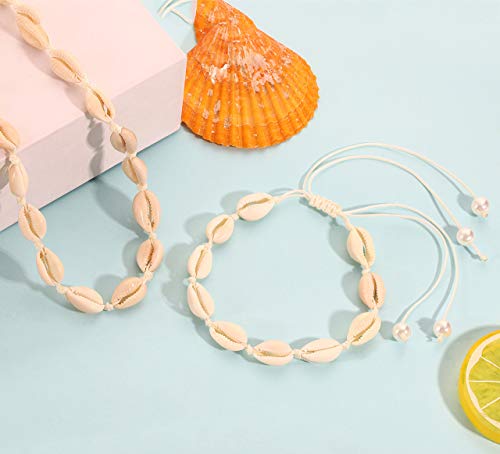 HSWE - طوق ضيق بصدف ودع للنساء سوار خلخال اكسسوار مصنوع يدويا من صدف البحر بتصميم هاواي صيفي اتش اس دبليو اي معدن متعدد الألوان