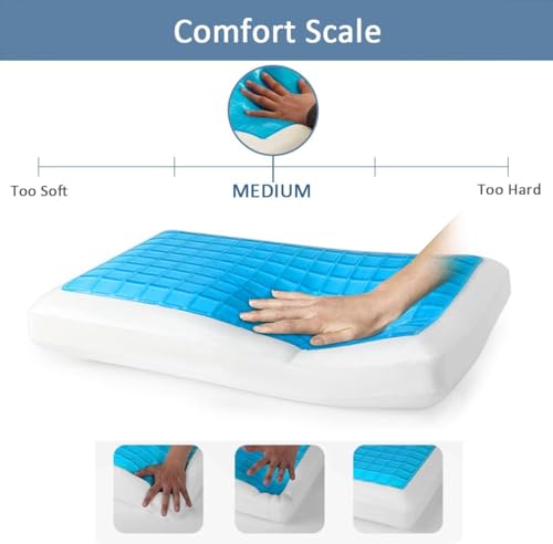 HT - مخدة نوم من الميموري فوم الألماني مع طبقة جل باردة اتش تي لتقويم العظام والرقبة الجل البارد غطاء قابل للازالة والغسل أبيض