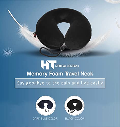HT - مخدة سفر على شكل الحرف U مصنوعة من اسفنج ميموري فوم ويمكن غسلها أسود ملكى HT