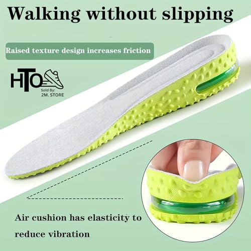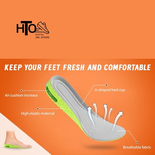 HTO - نعال داخلية لتقويم العظام لزيادة الطول للرجال والنساء، حشوات كعب رفع غير مرئية بوسادة جل ممتصة للصدمات 2.5 سم من اتش تو او، أخضر
