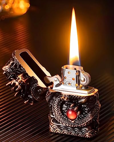 huaben - ولاعات منحوتة على شكل تنين عتيق، ولاعة قابلة لإعادة الاستخدام بعجلة طحن من الكيروسين للتجميع والتزيين، هدية زخرفية (برونز)