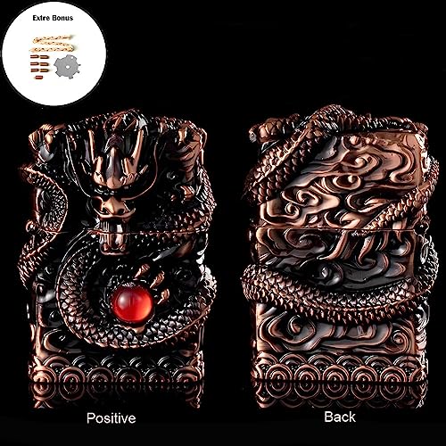 - فن النحت ثلاثي الأبعاد بنمط تنين يجعل الولاعة أنيقة وكلاسيكية، مع عملية حرفية متقنة، مليئة بالإبداع والنمط الشخصي، وهي أيضًا مناسبة جيدًا للتجميع.