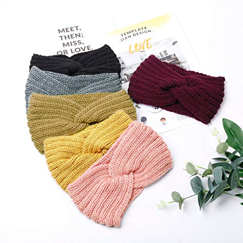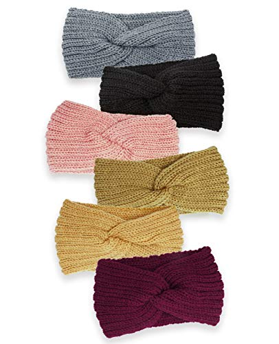 Huachi - أربطة رأس عريضة مرنة للنساء من الكروشيه المعقودة في الشتاء من هواتشي، أكسسوارات شعر مكتنزة لتدفئة الأذن، عبوة من 6 قطع