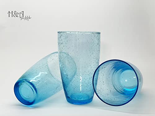 HUAFO - كوب زجاج هاي بول بابل باللون ازرق كوبالت - 500 مل، 14.5 × 8.5 سم، من هوافو
