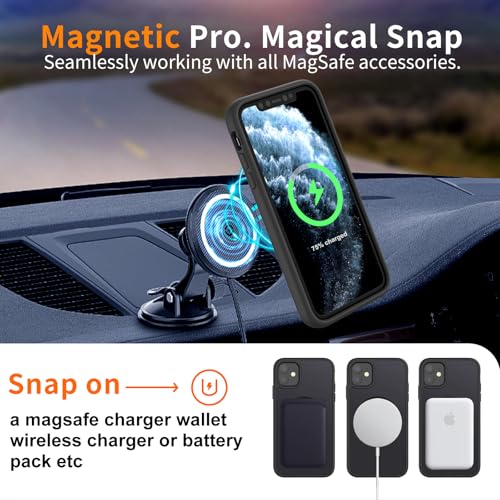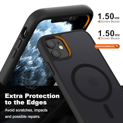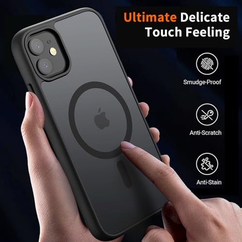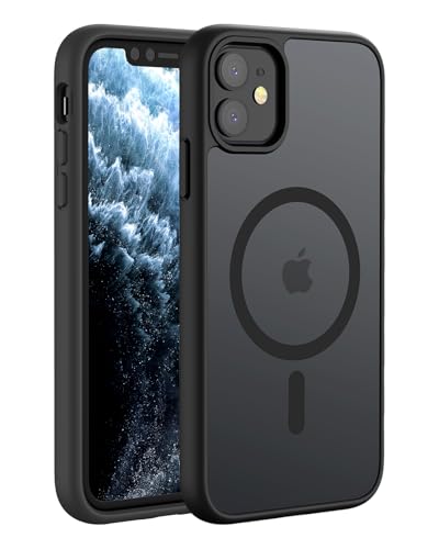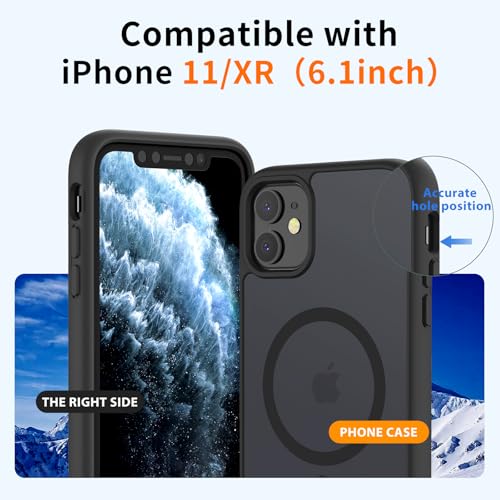 H HUALELE - جراب حماية مغناطيسي متوافق مع ماج سيف وشفاف ومقاوم للسقوط من الدرجة العسكرية وبظهر صلب مطفي وحواف ناعمة ورفيعة لموبايل آيفون 11 و11 XR من هواليلي، أسود