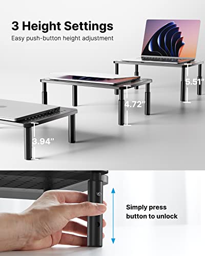 HUANUO - هوانو حامل شاشة - حامل شاشة قابل للتعديل بـ 3 ارتفاعات قابلة للتعديل، حامل شاشة مع فتحات لتدفق الهواء، حامل لابتوب للمكتب، حامل لابتوب للمكتب، منظم مكتب للشاشة، لابتوب 15.6 انش، الكمبيوتر الشخصي