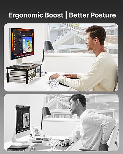 - توافق واسع: يدعم حامل الشاشة ما يصل إلى 44 باوند لحمل الشاشات وأجهزة اللاب توب حتى 15.6 بوصة والطابعات وأجهزة تشغيل ألعاب الفيديو الرقمية والمزيد. تضيف الوسائد المطاطية المضادة للانزلاق الثبات وتحمي الأسطح من الخدوش.
