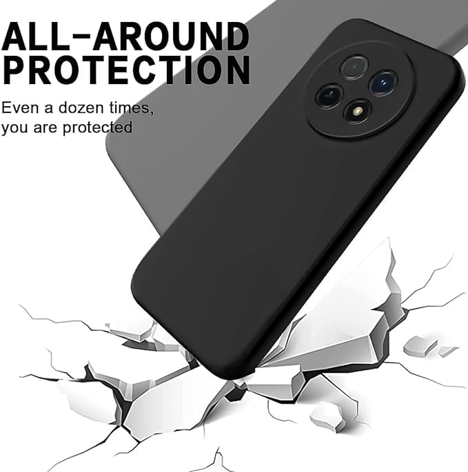Generic - جراب سيليكون لموبايل HUAWEI nova Y91 خلفي مقاوم للصدمات مبطن بالفرو من الداخل وحماية كاملة للكاميرات ضد الصدمات وواقي للشاشه (اسود)