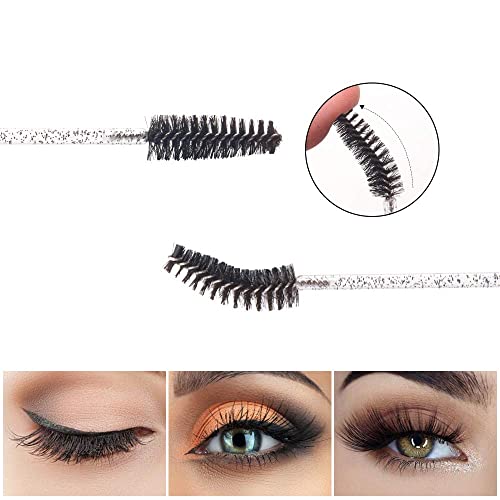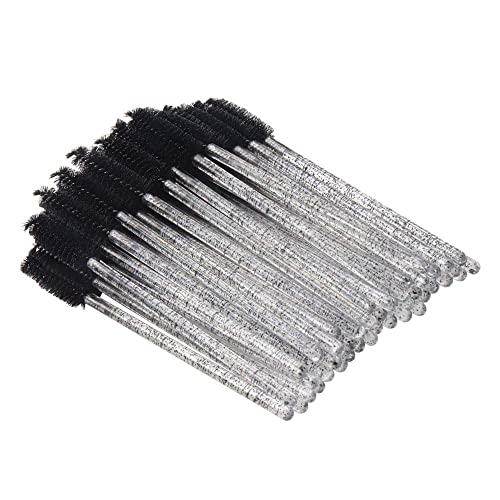 HUAXIYAN - فرش رموش للاستعمال مرة واحدة، أداة وضع الماسكارا للحواجب والرموش، مجموعة فرش مكياج من 50 قطعة (أسود كريستالي)