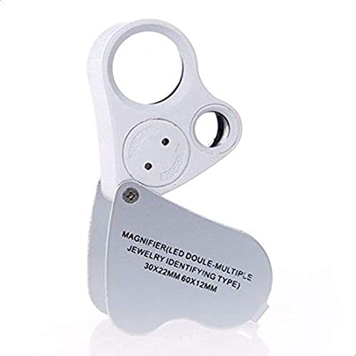 Huayang - مكبر لتكبير للمجوهرات بعدسات مزدوجة 60 × 12 ملم 30 × 22 ملم من الزجاج المضئ بمصباح ليد【H9958】