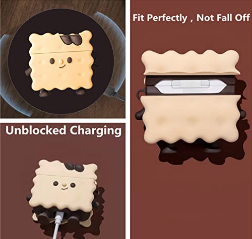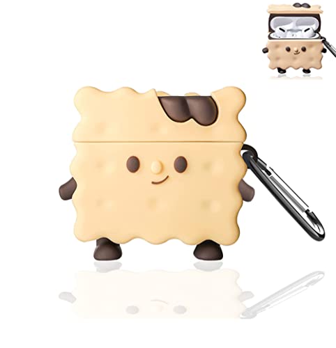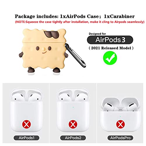 Huayou - حافظة حماية لطيفة لسماعات ايربودز الجيل الثالث 2021 مع سلسلة مفاتيح من هوايو بتصميم كرتوني ثلاثي الابعاد بتصميم كوكي مقاوم للصدمات من السيليكون الناعم للنساء والرجال والبنات والاولاد (بسكويت)، شفاف