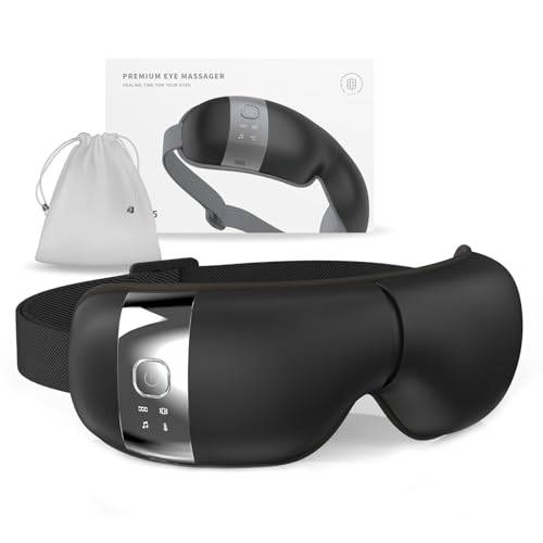 HuBDIC - جهاز تدليك العينين بالحرارة والاهتزاز والموسيقى، مدلك دافئ للصداع النصفي والاسترخاء وتقليل إجهاد العين والهالات السوداء وأكياس العين وجفاف العين وتحسين النوم للنساء و الرجال من هوبي كير، لون أسود