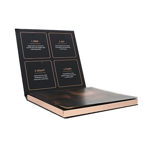 - باليت هايلايتر ذات قوامين مختلفين: ظل كريمي متلألئ وثلاثة ألوان متلألئة مضغوطة جذابة.
