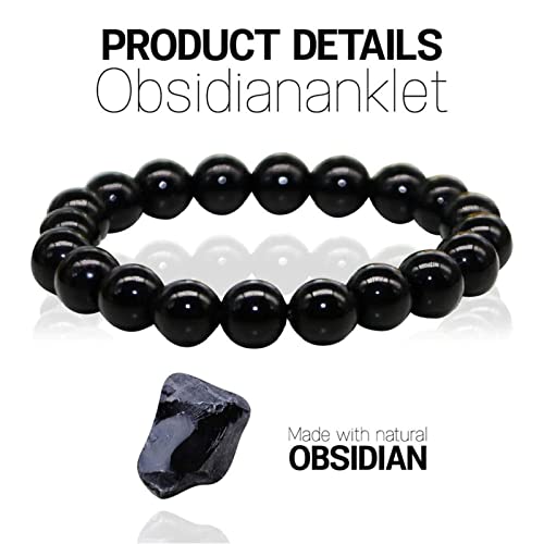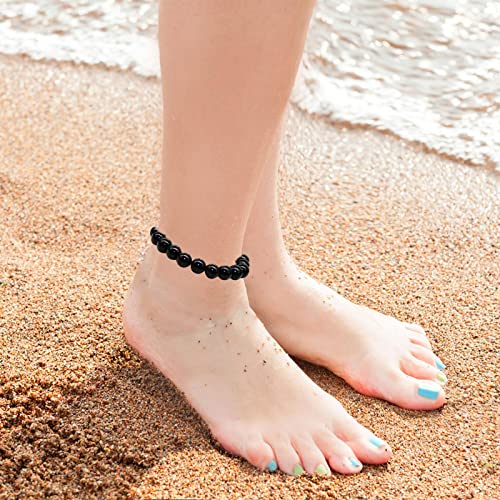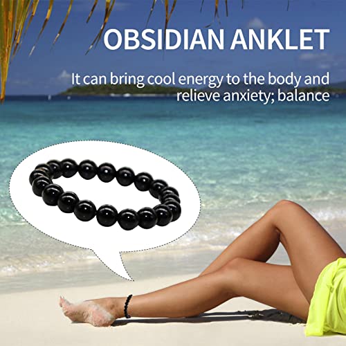 Hudhowks - خلخال من الزجاج البركاني مضاد للتورم من هدهوكس، خلخال زجاج بركاني أسود مضاد للتورم | خلخال مغناطيسي قابل للتعديل، سوار شاكرا لحماية الطاقة هدية للرجال والنساء