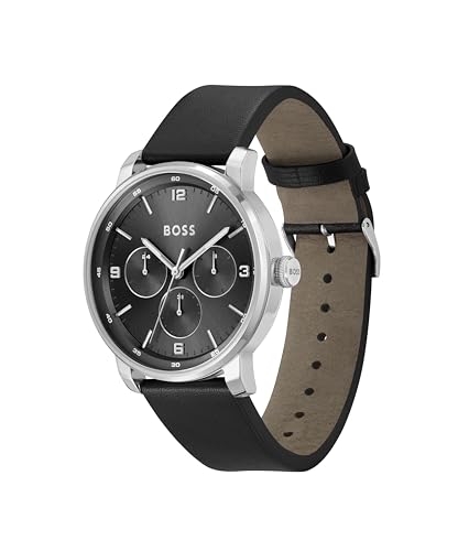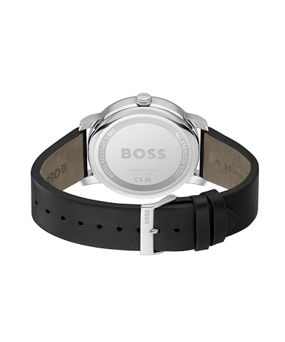 Hugo Boss - هوغو بوس ساعة للرجال بمينا اسود وسوار جلدي اسود - 1514125