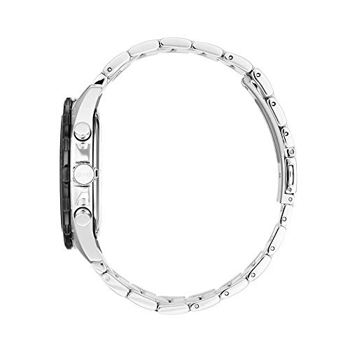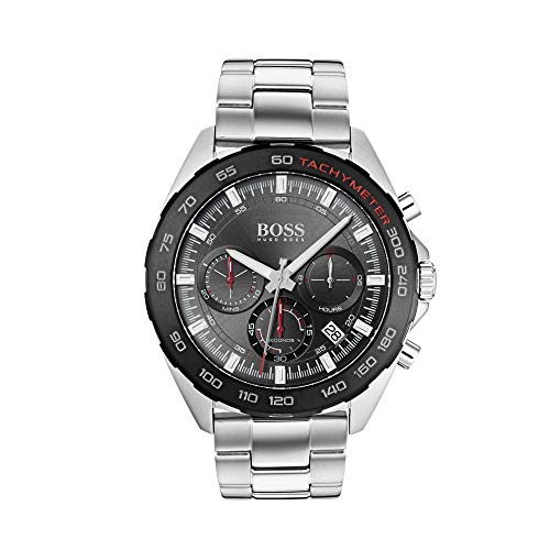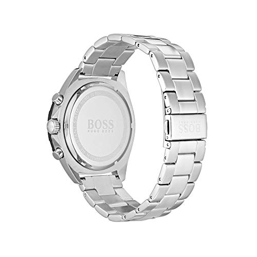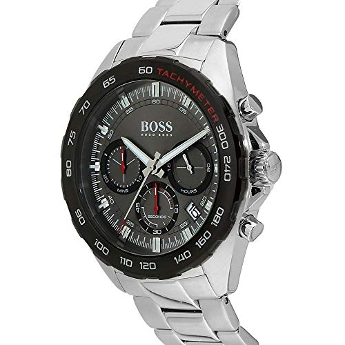 BOSS - ساعة انالوج دائرية كرونوغراف باطار بعداد دوران ومينا اسود من الستانلس ستيل للرجال من هوجو بوس - لون فضي