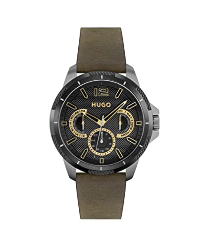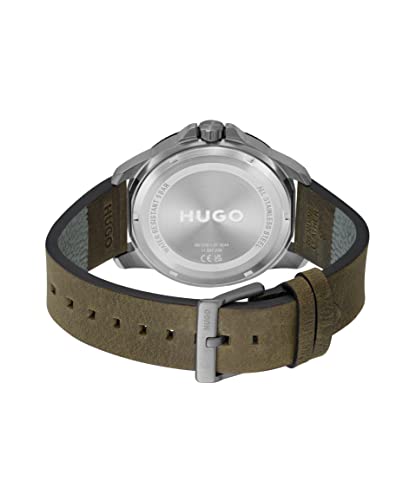 HUGO - ساعة كاجوال بسوار مطاطي للرجال من هوغو، بني, بني، انالوج