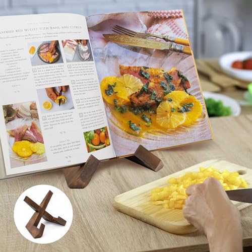 - المقاس المثالي: حجم معقول لحمل كتاب الطبخ بغلاف مقوى بسهولة من 21 × 30 سم وحتى 23 × 32.5 سم. ولكنها لن تكون قادرة على حمل الأشياء التي يزيد طولها عن 25 × 35 سم. يسمح لك الطول السفلي الممتد بضبط زاوية قراءة مريحة دون إعاقة قلب الصفحة.