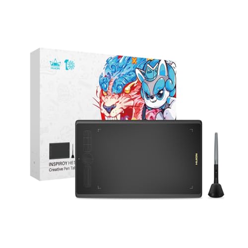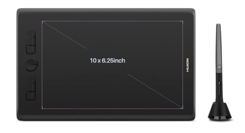 HUION - تابلت رسومات H610X من هيون مقاس 10 بوصات × 6.25 بوصة، مستويات ضغط 8192 8 مفاتيح، دقة 5080 خطًا في البوصة، لون أسود