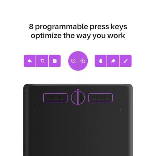 - 4. 8 مفاتيح ضغط قابلة للتخصيص: خصص الـ8 مفاتيح السريعة القابلة للبرمجة مع أي مجموعة مختصرة تفضلها في مشغل هيون وأعمل على تحسين مستوى أداء عملك. كما أنه مناسب لكل من مستخدمي اليد اليسرى واليمنى. تابلت H610X يتميز بمنطقة عمل 10 أضعاف مقاس التابلت الذي يبلغ 6.25 بوصة وسمك 8 ملم مما يوفر مساحة إبداعية مثالية لمساحة سطح المحدودة. يسهل معه تنفيذ أعمالك والاستعداد الدائم للإبداع في أي زمان وأي مكان.