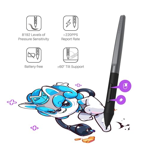 - 3. أداء دقيق للقلم: يمتاز القلم الرقمي PW100 بـ 8192 مستوى من حساسية الضغط،، وتبلغ دقة قلم 5080LPI خط لكل بوصة بدون تأخير تقريبًا، مما يوفر لك الدقة والتحكم الأقصى. كما لا يحتوي الجهاز على بطارية، فلا حاجة للشحن بعد الآن. تساعدك الأزرار الجانبية للقلم على التبديل بين القلم والممحاة على الفور. يأتي مع 8 سنون إضافية للأقلام داخل حامل القلم.