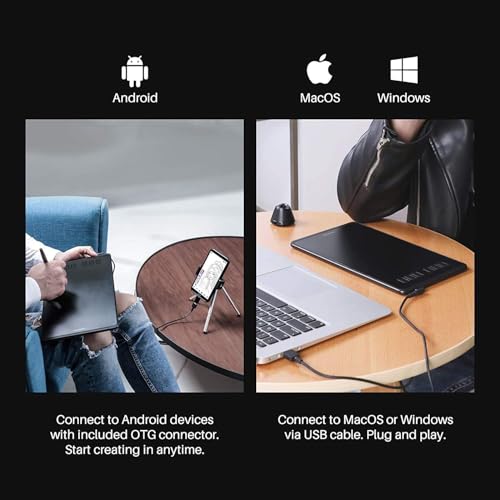 - يدعم نظام التشغيل Linux/ماك/ويندوز/اندرويد: لا يتوافق تابلت هويون H640P مع نظامي التشغيل ماك وويندوز فقط، بل يدعم أيضًا نظام اندرويد 6.0 أو الأحدث عبر محول او تي جي مضمن لتحويل موبايلك إلى لوحة رسم رقمية. يعد هذا التابلت سهل الاستخدام ومثاليًا للأطفال والمبتدئين في الرسم أو الرسوم المتحركة أو تحرير الصور أو أعمال التصميم في معظم البرامج بما فيها ادوبي فوتوشوب وبينت تول ساي واليستريتور وكورال درو وكورال بنتر وسكيتش بوك ومانجا ستوديو وكليب ستوديو بينت والمزيد.