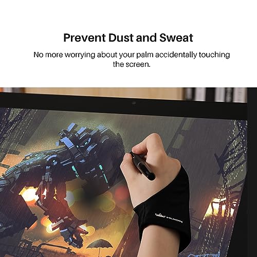 HUION - جوانتي ارتيست بتقنية رفض راحة اليد لتابلت الرسم والرسم على الورق وصندوق الإضاءة، جوانتي مرن من الليكرا بإصبعين مناسب لليد اليمنى واليسرى من هيون