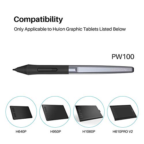 HUION - قلم الكتروني PW100 من هيون بدون بطارية لاجهزة تابلت رسم انسبيروي H640P-H950P-H1060P-H610Pro V2-HS610-HS64-H420X-H580X-H610X بي دبليو 100