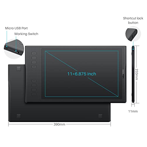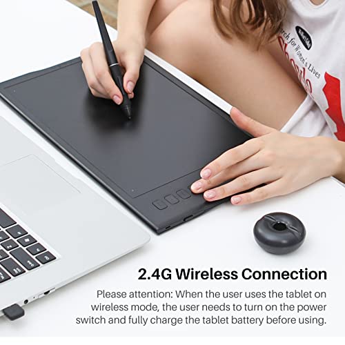 - تردد 2.4 جيجاهرتز، اتصال لاسلكي: قرص الرسم Q11K يسمح بالعمل بدون كابل بسبب بطارية ليثيوم أيون المدمجة 2500 مللي أمبير في الساعة. دعم اتصال سلكي: يمكن توصيله بكابل ميكرو USB.