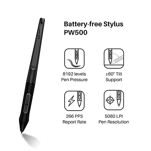 - 8192 مستوى من حساسية الضغط تحديث 4 مرات من 2048 إلى 8192. معدل الإبلاغ 266 نقطة في الثانية ودقة وضوح الشاشة 5080LPI.