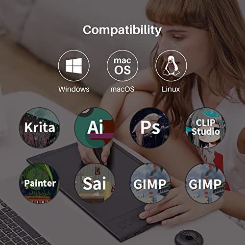 - متوافق مع نظام التشغيل ويندوز، وأنظمة نظام التشغيل ماك والبرنامج الفني الرقمي الرئيسي: ادوبي فوتوشوب واليستراتور وكورال بينتر ومانجا ستوديو وكليب ستوديو وزد برش وكريتا وجيمب والمزيد ضمان لمدة عام.